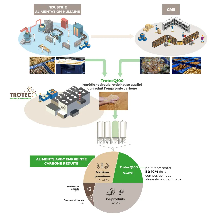 De nouvelles études suisses (Agroscope) et belges (Ilvo) montrent que la part de l'ingrédient circulaire TrotecQ100 peut représenter jusqu'à 40 % de la composition des aliments pour animaux !