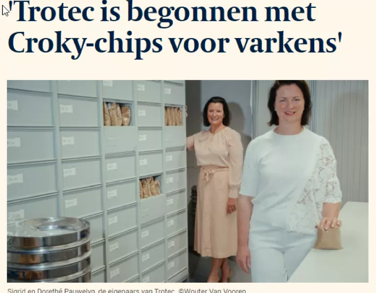 Blog 24.01.2023 Duurzaamheidsopleiding bij leverancier Eerste duurzaamheidsopleiding bij leverancier voor 2023 is een feit. Lees meer 27.01.2023 ‘Future of Europe’ event met Ursula von der Leyen, 26 januari 2023 Uniek event met interessante ontmoetingen en gesprekken. Lees meer 10.10.2022 Trotec verschijnt in 'De Tijd' JAN DE SCHAMPHELAERE - 08 oktober 2022 Het West-Vlaamse Trotec is een pionier in het vermijden van voedselverliezen. Lees meer 02.06.2022 Trotec met EU Life Program in De Molenaar Nr 7 “De erkenning als Life-project kregen we precies omwille van onze productietechniek en het innovatieve karakter van onze producten. ” Lees meer 12.05.2022 Vlaio Ondernemersverhalen Trotec verwerkt nevenstromen uit de voedingsindustrie tot hoogwaardige grondstoffen voor dierenvoeder. Op die manier dragen we al sinds 1968... Lees meer 04.11.2021 Artikel in De Molenaar nr. 14 Het West-Vlaamse Trotec, dat bijproducten van de voedingssector verwerkt voor veevoeding, in de vorm van Trotec France, voor de eerste keer... Lees meer Meer laden